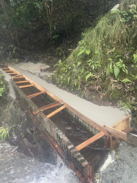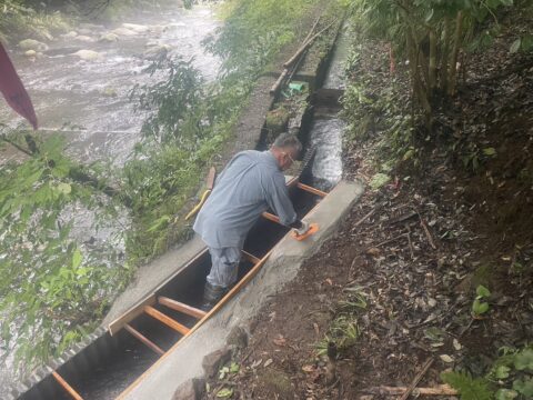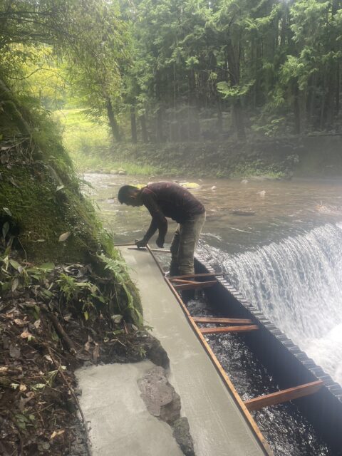 弊社、社長の地元でのお仕事依頼です。川の水路工事の仕事です👷